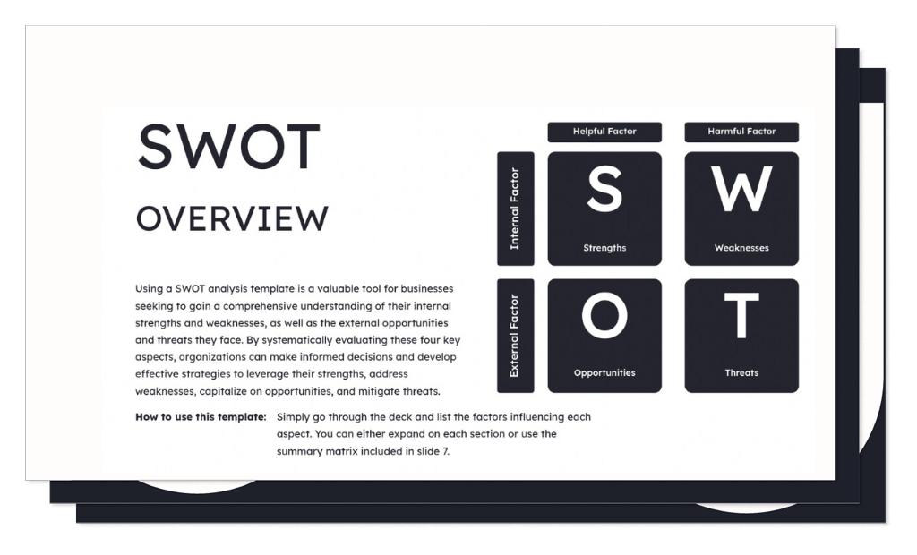 Identify strengths, weaknesses, opportunities, and threats for your business or a specific project with this template