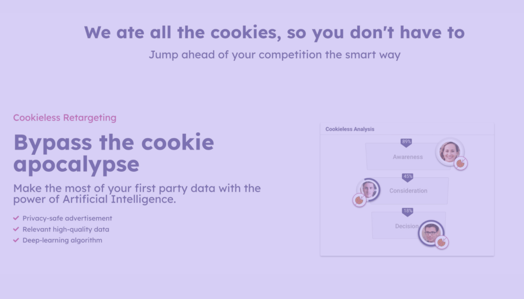 Device fingerprinting is a technology that can be used to identify users based on a combination of device attributes, such as the device type, operating system, and browser. Device fingerprinting can be used to track user behavior across multiple devices, even if cookies are not available. There are tools, like Pathmonk Retargeting, that embrace new-age technologies and remove the reliance on cookies. This cookieless retargeting is based on your users’ intent and buying journey stages.